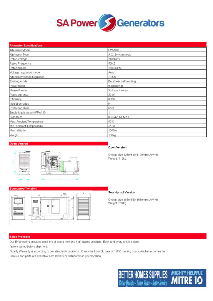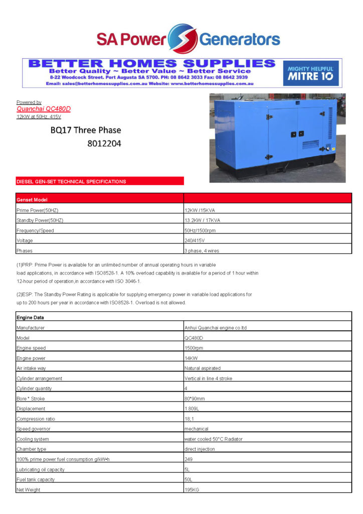 SDS Power Equipment BQ22 Single Phase 17.5kw 22kva Power Backup – 8012396