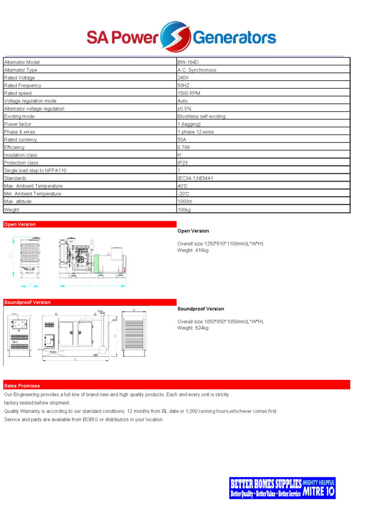 Standby Power (50HZ) 13.2KW / 13.2KVA