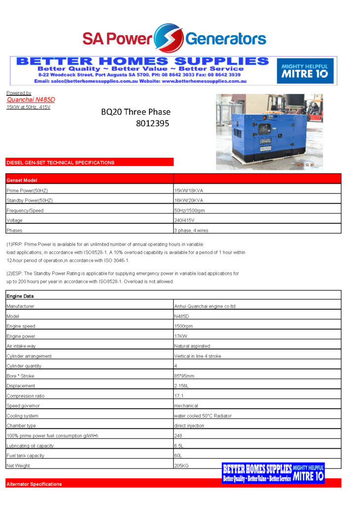 SDS Power Equipment BQ20 3 Phase 16kw 20kva Power Backup – 8012395