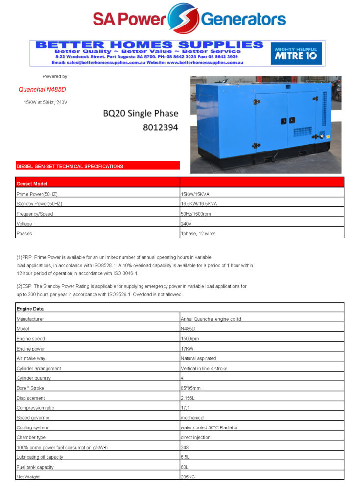 SDS Power Equipment BQ20 Single Phase 16kw 20kva Power Backup – 8012394