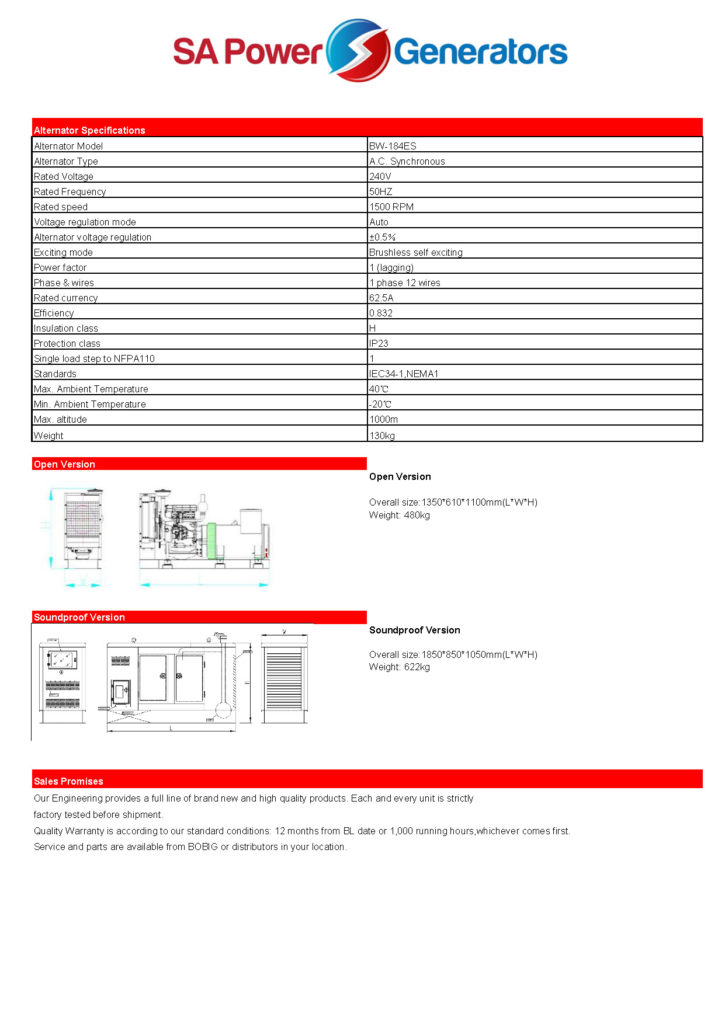 Standby Power (50HZ) 16.5KW / 16.5KVA